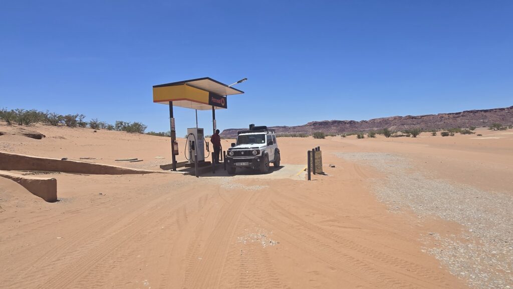 On our longest trip between Twyfelfontein and Swakopmund (9-10 hours/350km), we had to consider the issue of there not being many petrol stations. As everything is sparsely located in Namibia (outside Windhoek anyway), it was on this length of the journey we had to use the jerry can just the once in this 1.5l Jimny. Fortunately, most rental places already have the jerry can added as a part of the package.