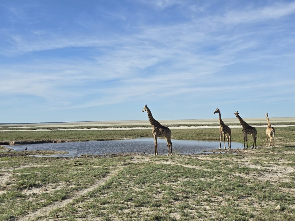 Etosha salt pan lookout near Halali was especially other-worldly. The vastness of it all makes you feel so small in comparison.